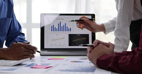 Business team meeting present, investor colleagues consultation and conference new strategy plan business and market growth on financial document graph report, Meeting and Talking.