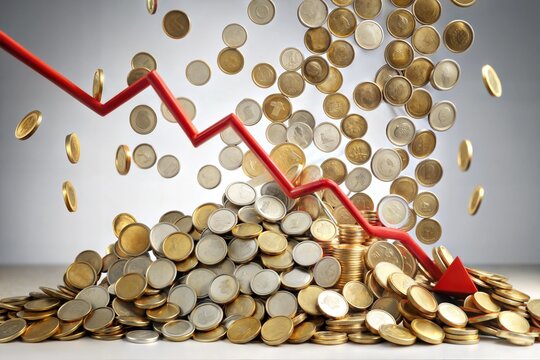 Illustration depicting financial decline with a downward trending graph money bag and coins symbolizing economic downturn loss or recession business video motion design