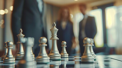 Chess business concept, leader & success. Chess figures on a chessboard.