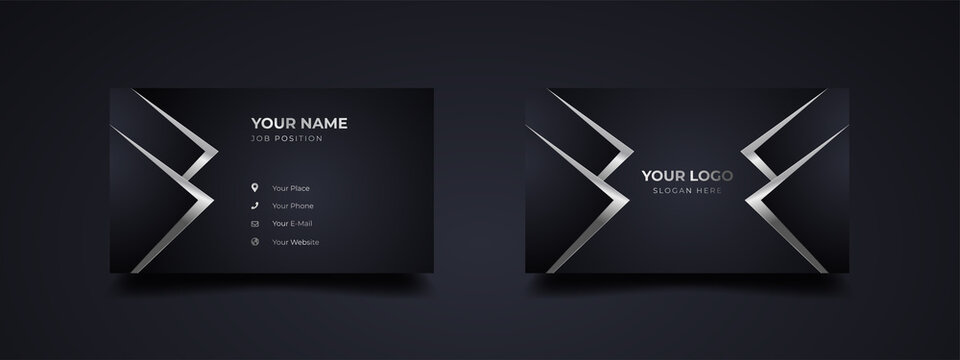 Business card blank on black wooden background. Corporate Stationery, Branding Mock-up. Creative designer desk. Flat lay. Copy space for text