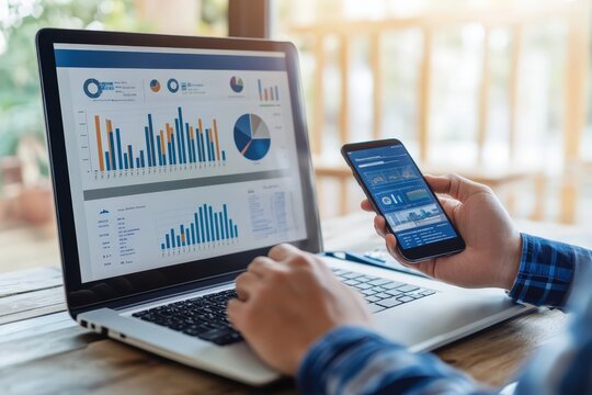 Businessman managing global business tasks and operations using advanced digital applications on a virtual interface via smartphone. Emphasizes productivity, innovation, and strategic decision-making.