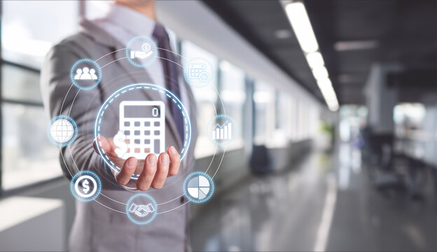 Audit business, Businessman using laptop with audit icon for financial examination for business and financial management system. Compliance with internal organization financial services regulation.