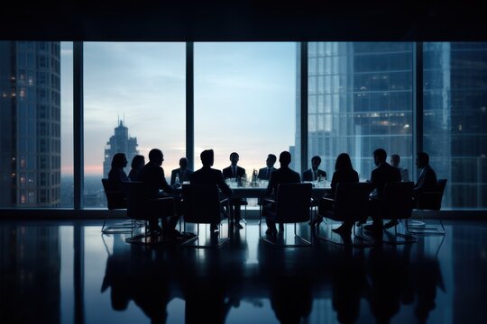 The powerful outline of a leader emerges from an enchanting orange light creating an abstract circle of inspiration. This scene evokes themes of guidance and progressive vision in business