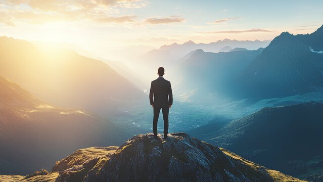 The mountain peak represents the ultimate success and accomplishment in the age of digital transformation. Employing innovative strategies to change the business environment. Generative AI