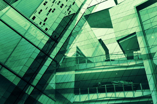 Glass of modern tower for business background