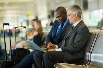 An Asian businessman is using a smartphone to get in business while waiting for a trip in the airport.