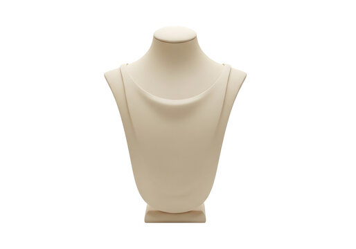Beige fabric necklace display bust stand isolated on transparent background