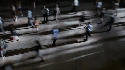 Dynamic movement of people in a busy city at night, with blurred motion creating hustle and bustle