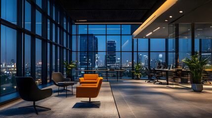 Business office space in the urban night scene