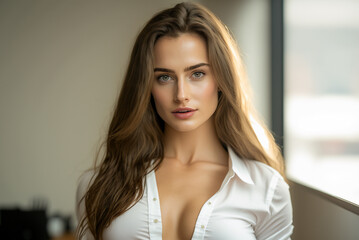 young pretty sexy secretary white shirt working in modern financial office background Business concept,generative ai.