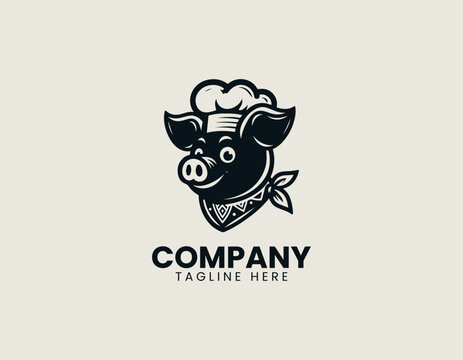 Friendly Piggy Cook Hat Culinary Food Service Emblem Vector Logo