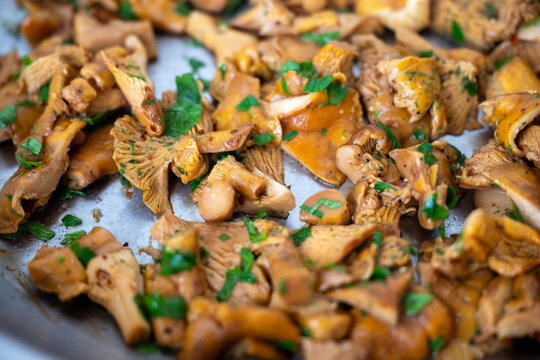 Chanterelle Mushrooms Cooked in Butter with Fresh Parsley