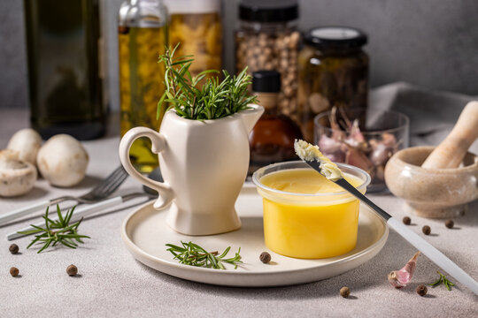Aromatic ghee butter with rosemary and spices enhancing culinary delights