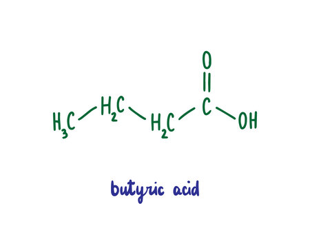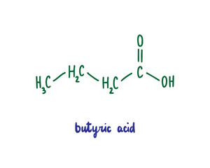 Butyric acid hand drawn vector formula chemical structure lettering blue green