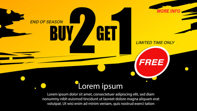 Buy 2 Get 1 Free, sale tag, banner design template, discount app icon. EPS 10.