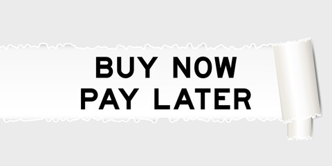 Ripped gray paper background that have word buy now pay later under torn part