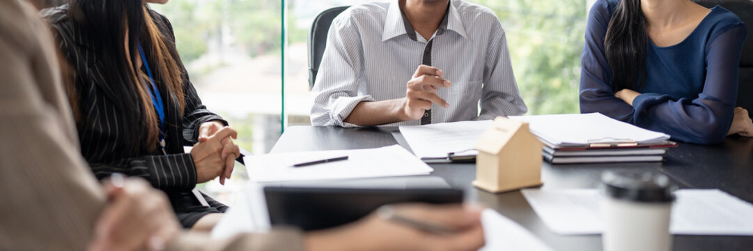 Business people signing contract making deal with real estate agent Concept for consultant home insurance Real estate investment Property insurance security. Real estate agent.
