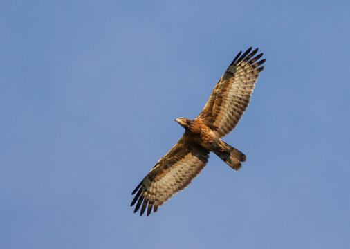 Oriental honey buzzard in flight.Crested honey buzzard is a bird of prey in the family Accipitridae.