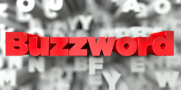 Buzzword -  Red text on typography background - 3D rendered royalty free stock image. This image can be used for an online website banner ad or a print postcard.