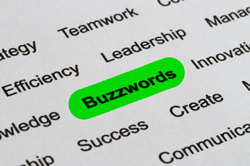 Buzzwords concept. Block letters and cursive font on black background. Minimal aesthetics.