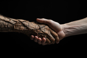A pair of intertwined hands, weathered by time, telling a story of life's journey and the enduring beauty found in shared experiences. Concept of enduring connections. Generative Ai.
