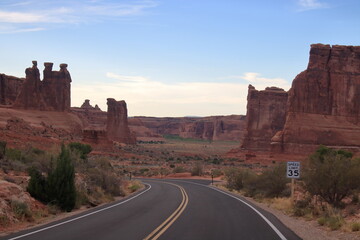 Arches National Park scenic byway passes through various sandstone formations