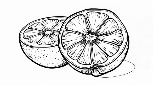 Artistic depiction of sliced citrus fruit, detailed sketch, black and white.