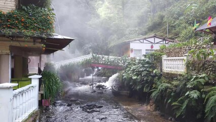 Colombia , Salento 2022  - Termales Santa Rosa de Cabal is a Spa thermal baths immersed in nature outdoors with waterfall and hot water tubs for the well-being of the body - tourist attraction