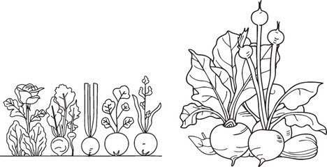 Vegetables set hand drawn vintage vector sketch drawing. draft silhouette drawing, black on white line art. Botanical vintage etching design.