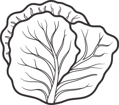 Detailed black and white line art illustration of a fresh cabbage head isolated on a white background.