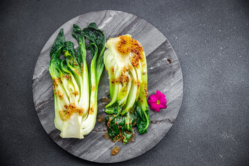 Bok choy or pak choy dish , Chinese cabbage vegetable healthy meal food snack on the table copy space food background rustic top view