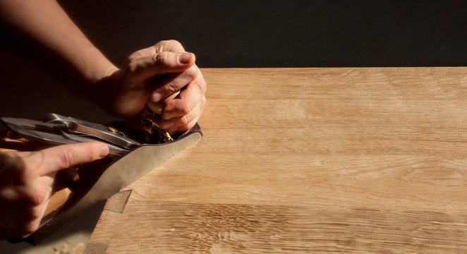 Vector illustration of a carpenter and crafting table