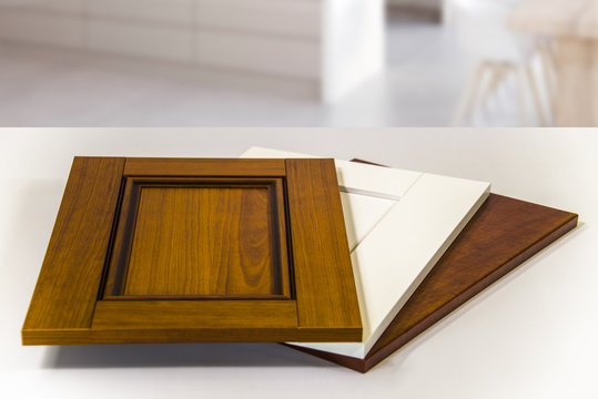 three modern wooden kitchen cabinet doors, traditional brown and contemporary white bathroom vanity wood  kitchens cabinetry door panel sample