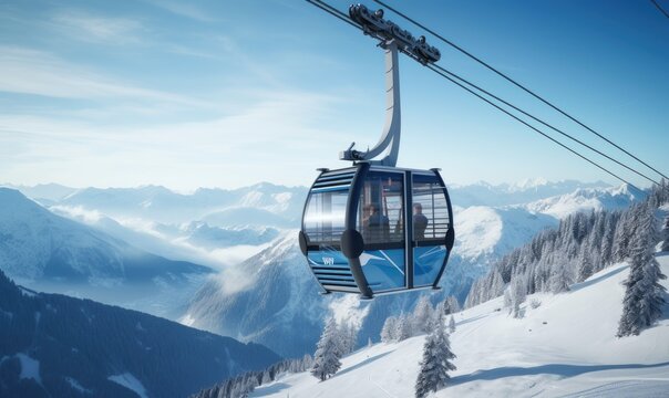 Cable Car Ascending Majestic Snowy Mountains