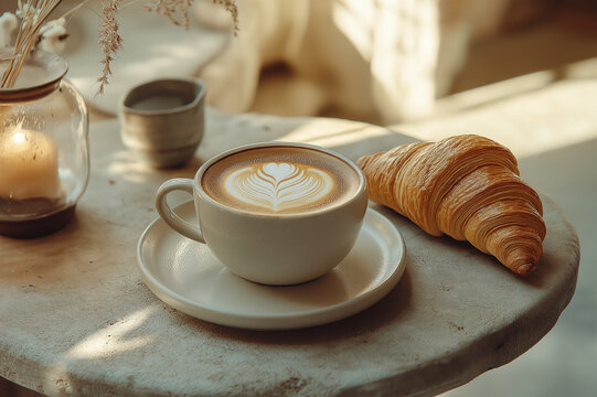 Minimalist cafe interior design with warm tones ivory white decor and round counters. Concept Cafe Interior Design, Minimalist Style, Warm Tones, Ivory White Decor, Round Counters