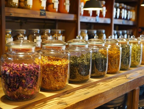 Vibrant display of herbal teas and their health benefits set in a warm