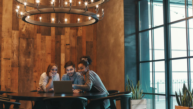 Smiling female cafe workers in a coffee shop. Team work and coworkers concept.
