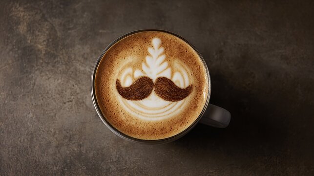 Coffee art served in a cup featuring mustache latte art, creating a fun, playful beverage presentation. A creative coffee for the refined caffeine enthusiast.