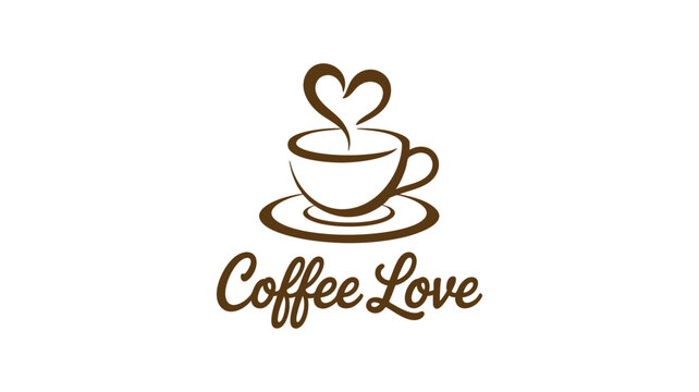 Charming coffee love logo design featuring a heart steam and elegant script font vector