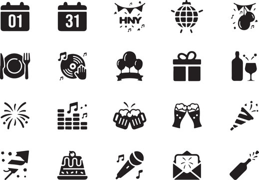 Holiday and Gift Icons Set – Calendar, Celebration, Gift, Date, Event, Box, Icon Set, Party, Present, Outline, Solid, Minimal, Surprise, Icon Pack, Festive