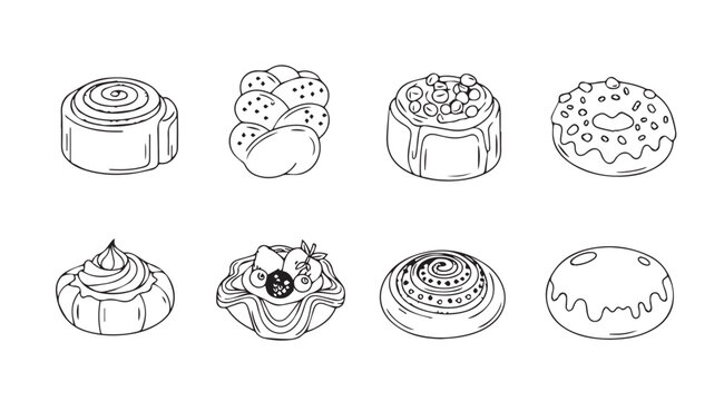 Collection of eight illustrated sweet pastry and dessert silhouettes silhouette