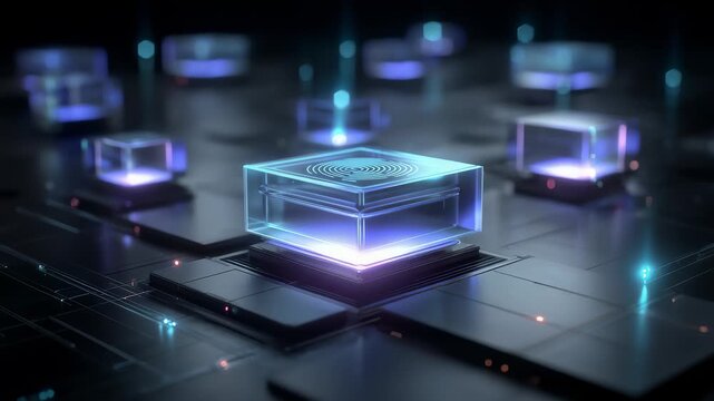 A researcher intently examines quantum computing data displays on a wall, demonstrating principles like superposition and entanglement in a high-tech lab. Vibrant colors reflect advanced simulations.
