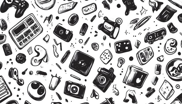Sketchy Gadget Pattern Black White