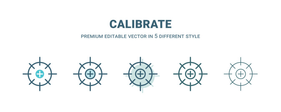 calibrate icon in 5 different style. Outline, filled, two color, thin calibrate icon isolated on white background. Editable vector can be used web and mobile