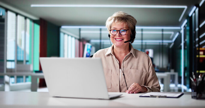 A call center woman in a headset poster with copy space - Fictional Person, Generative AI