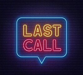 Last call neon sign on a brick background.