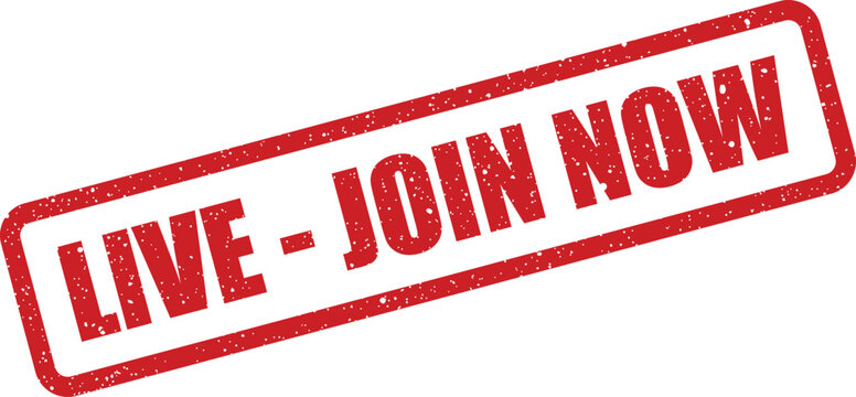 Distressed rectangular rubber stamp vector displaying LIVE JOIN NOW text for immediate online event participation invitation