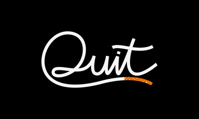 vector of calligraph word "quit" as cigarette for stop smoking motivation, black background