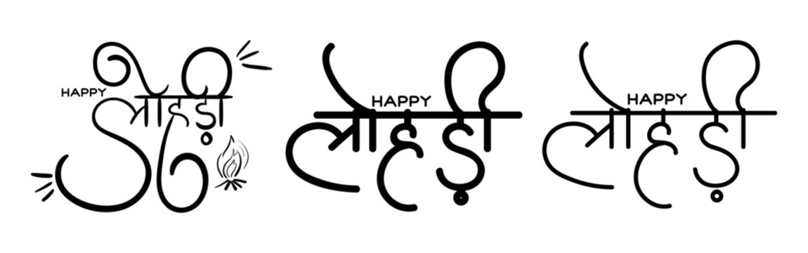 Vector hand written hindi calligraphy set of Happy Lohri on transparent background