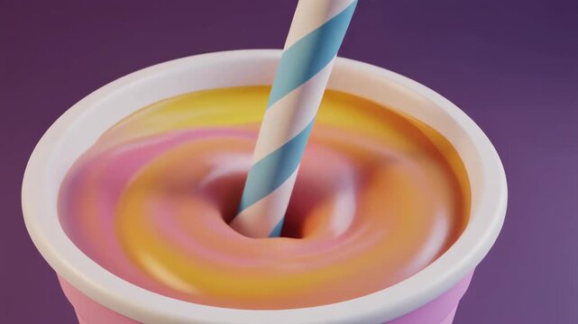 A lively cartoon moment caught as a smoothie cup stirs itself in gentle swirling motion